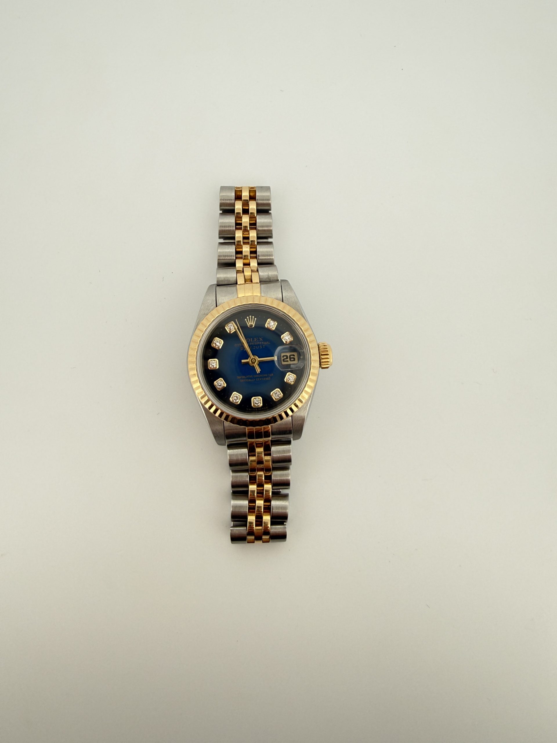 Couleur cadran : Bleu et diamants (diamants F VS1 d’environ 0.20 carats)